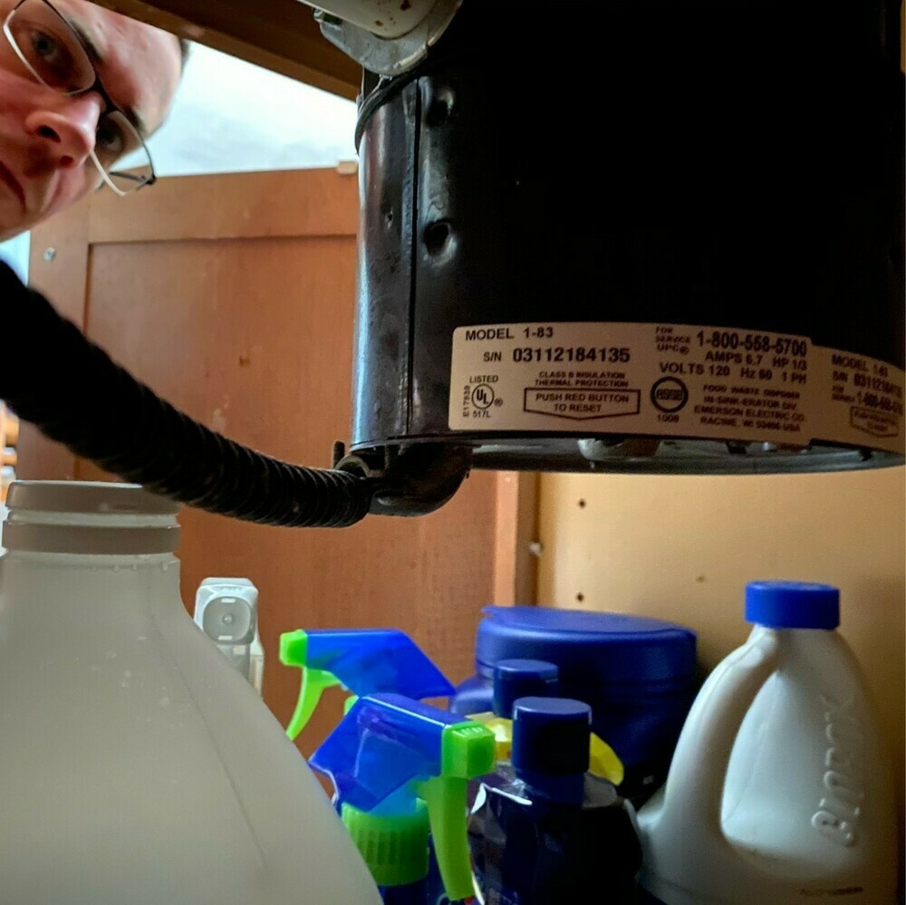 The dull spectacle of me trying to figure out the kitchen sink’s plumbing. My iPhone is a handy remote eye, well suited for dark, tight spaces.